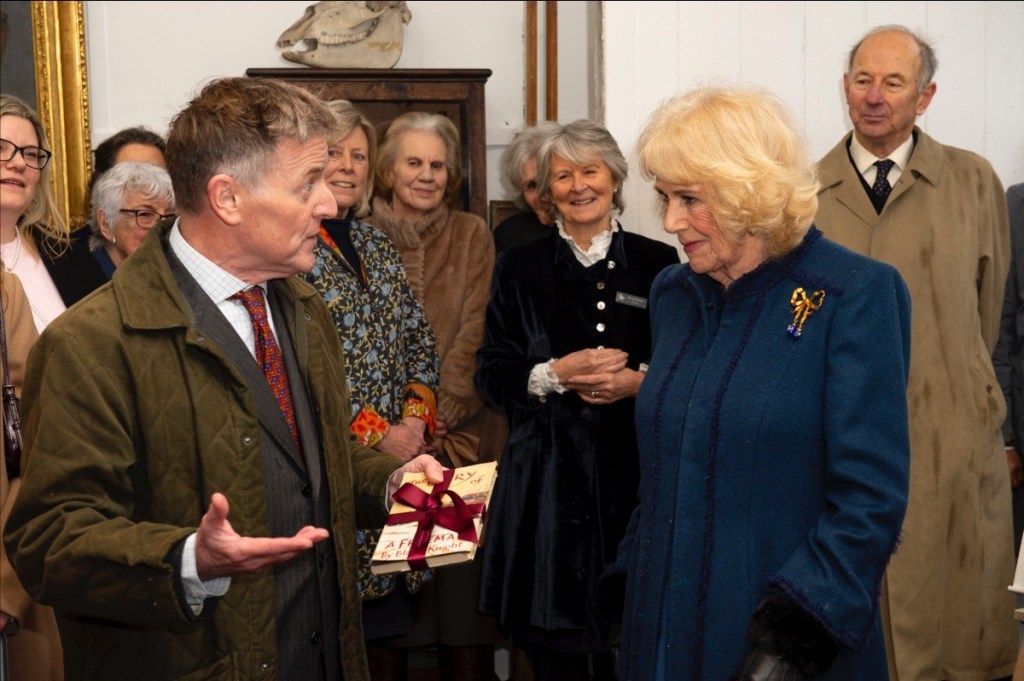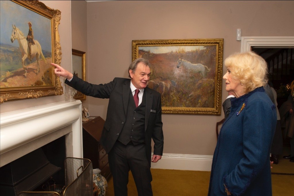 Finally Their Majesties went into the former working studio of Sir Alfred Munnings, which still houses his brushes and easels, and met and chatted with fifty of the museum’s volunteer room stewards who greet visitors each year. Trustee of the museum, Hugo Parker later commented: